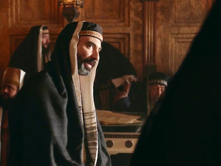 Then he adds, "I have a feeling about you, Yussif. You weren't lying when you said you are observing and discerning." He drops his head, leading Yussif to question if he is okay. Shmuel explains, "Men throughout history have called their age confusing or troubling times. I suppose ours is not any different. I can honestly say I'm glad you're here." Yussif thanks him. Gedera the Sadducee calls everyone in the Sanhedrin to attention.